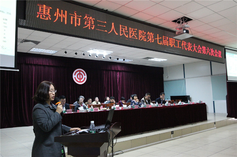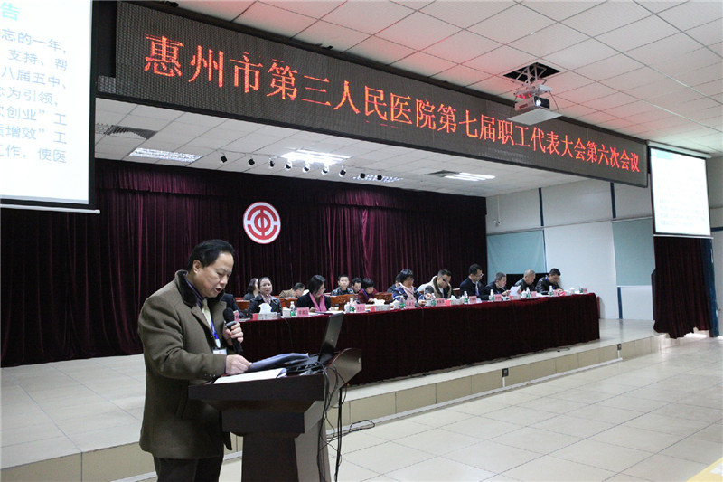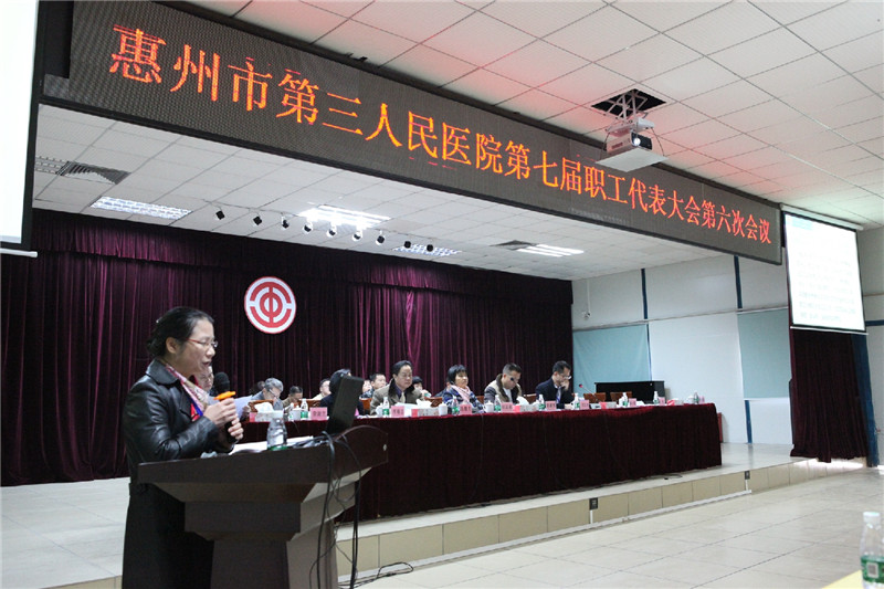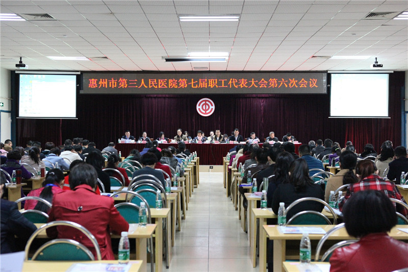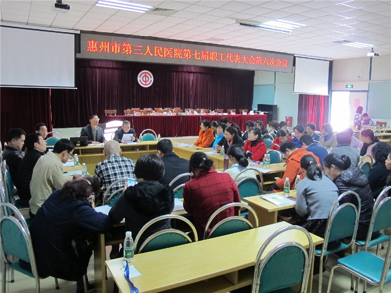 2017年1月22日,三院在医院多功能会议室召开了“惠州市第三人民医院第七届职工代表大会第六次会议”。大会共有202正式代表和56人特邀代表参与会议。惠城区总工会组建部部长刘建秀同志,惠城区卫计局党委委员、工会主席林彩英同志等领导出席了会议。