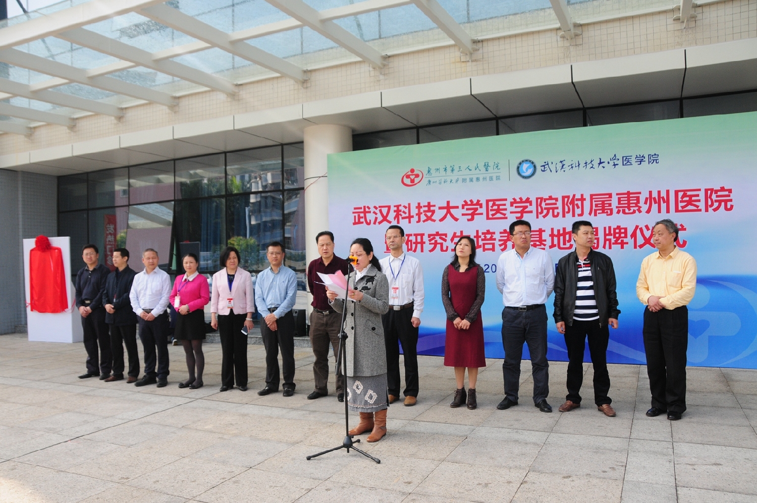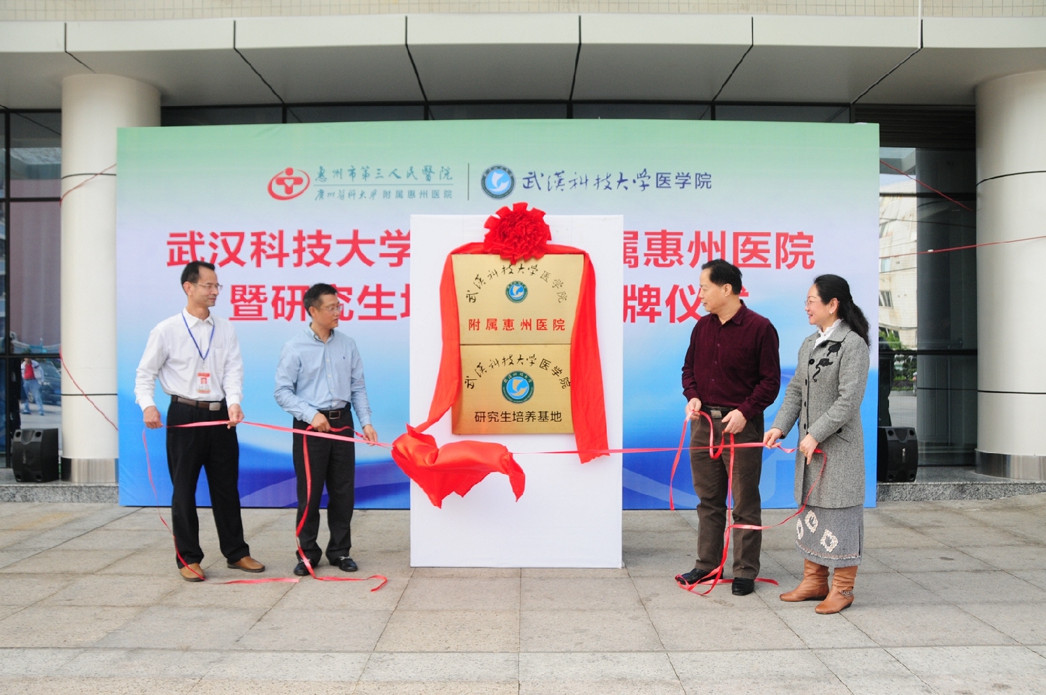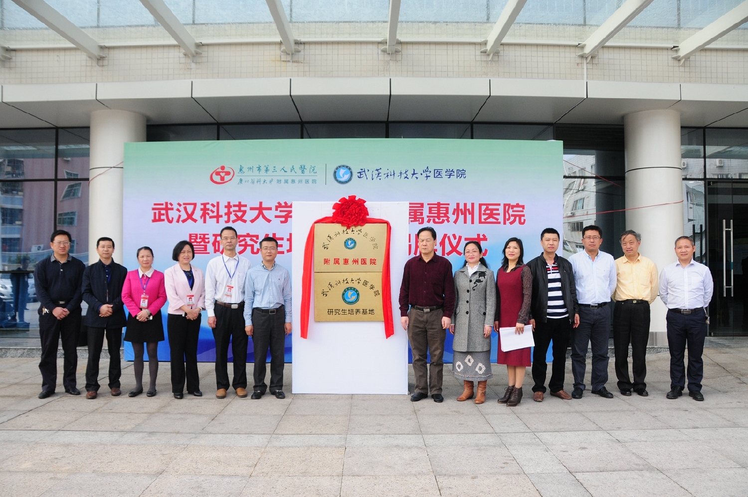 2017年3月20日上午,武汉科技大学医学院附属惠州医院暨武汉科技大学医学院惠州研究生培养基地揭牌仪式,在惠州市第三人民医院门诊楼广场隆重举行。惠州市第三人民医院党政领导班子、中层干部会成员、武汉科技大学医学院吴清明院长一行5人出席揭牌仪式。