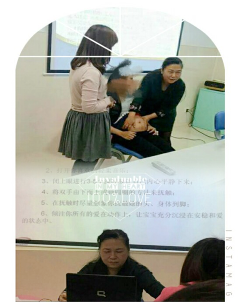 除了理论知识的授予,还有现场的实践呢,看,现场已经活跃起来啦。上面的模特妈妈都积极地配合着罗医生,罗医生边解说边示范如何来进行抚触胎教,下面的准爸爸妈妈们也都很认真地在学习哦!