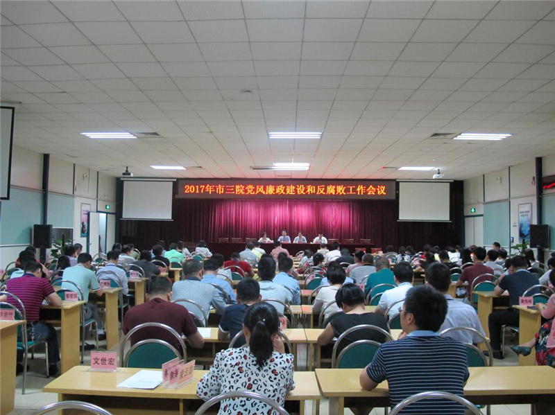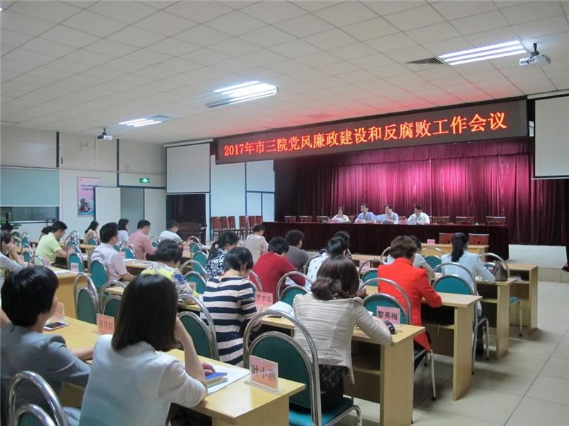 2017年4月11日下午,我院召开2017年党风廉政建设和反腐败工作会议,深入学习十八届中央纪委七次全会、省纪委十一届六次全会、市纪委十一届二次全会和区纪委第八届二次全会精神,总结医院2016年党风廉政建设工作,部署2017年党风廉政建设和反腐败工作任务。会议由李春兰副院长主持,医院中层以上干部、党支部书记、支委及重点岗位人员参加会议。