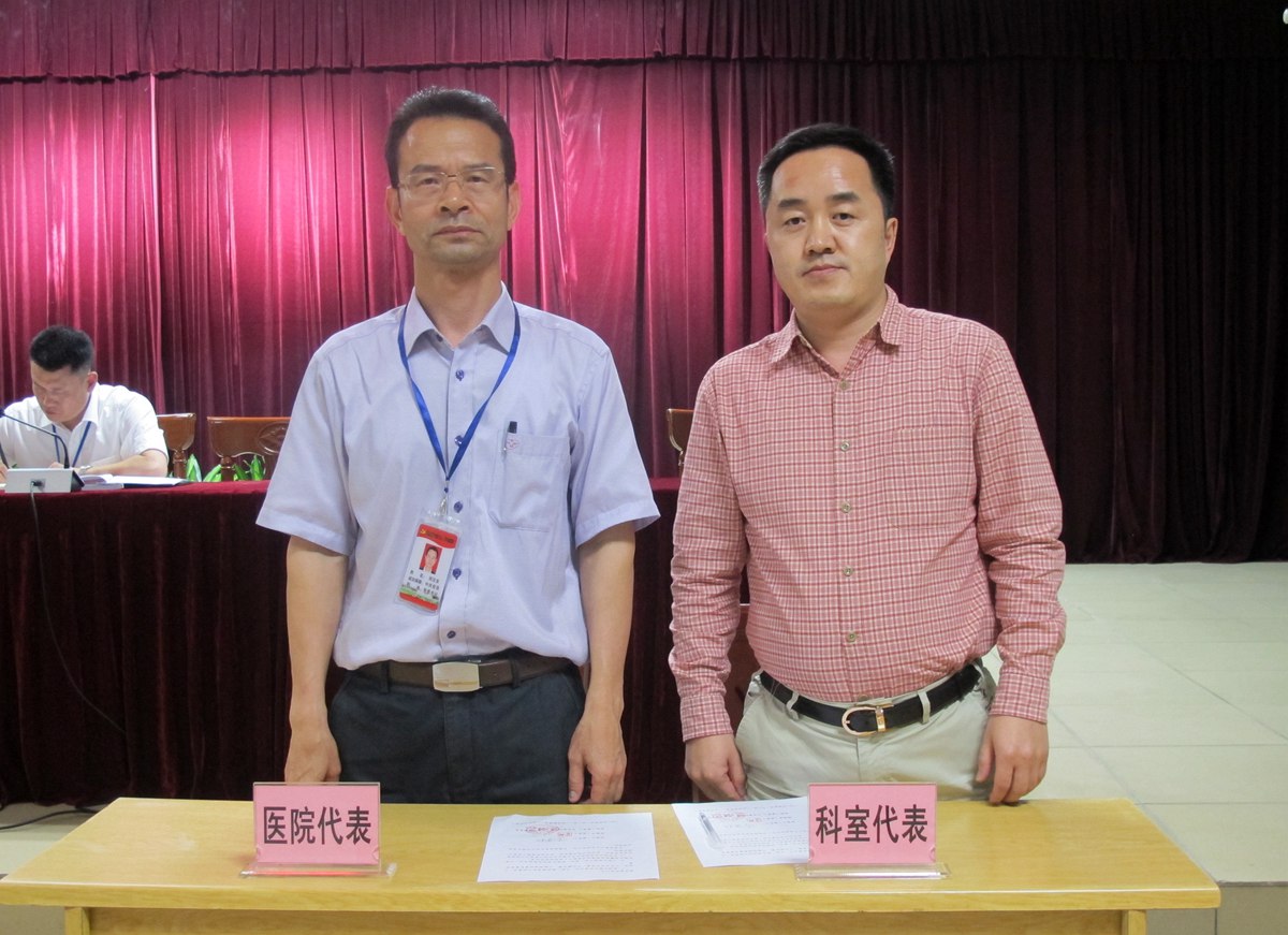 邓汉东书记(左)代表医院党委分别与医务人员代表、党支部代表签署了《承诺书》和《责任书》