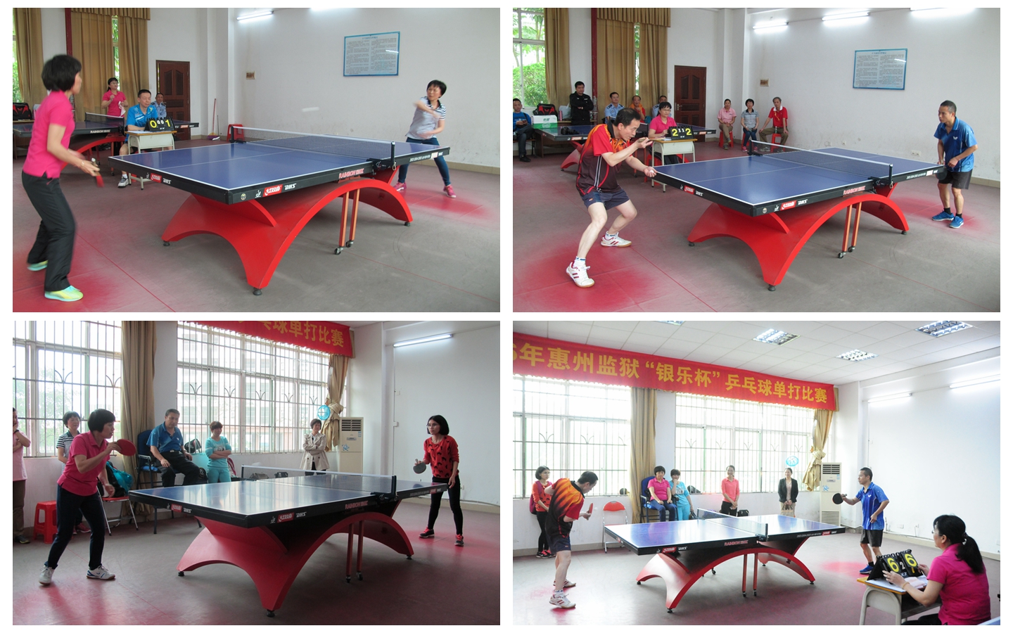 2017年4月21日下午,我院乒乓球队一行17人,由马显力院长和李淑兰工会主席带队受邀前往与惠州监狱赶紧开展乒乓球交流赛,双方进行男子单打、女子单打及团体赛,乒乓球爱好者们个个精神抖擞、激烈拼搏。