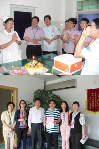吕汉文: 这是我平生接到工作单位的第一个生日礼物(蛋糕及生日祝贺),我会将医院领导对我的深情厚意与我家人和朋友分享,我为有幸能成为这个温馨和谐的大家庭一员,倍感骄傲。在我生日之际,借此平台,祝全院员工身体健康,心想事成,万事如意。愿我院医疗工作更上一个台阶。