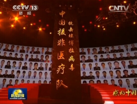 在2014年感动中国人物中特别致敬抗击埃博拉病毒中国援非医疗队,这是对远渡重洋的中国医务人员崇高的敬意,也是对医务工作者辛勤工作的肯定。根据报道:“中国在当地支持并参与疫情防控工作的中国医务人员累计近600名,并已向13个非洲国家提供了4轮价值约7.5亿元人民币的紧急援助。是新中国成立以来卫生领域最大一次援外行动。”危难时刻,中国挺身而出和世界在一起,医务人员责无旁贷和非洲人民在一起。