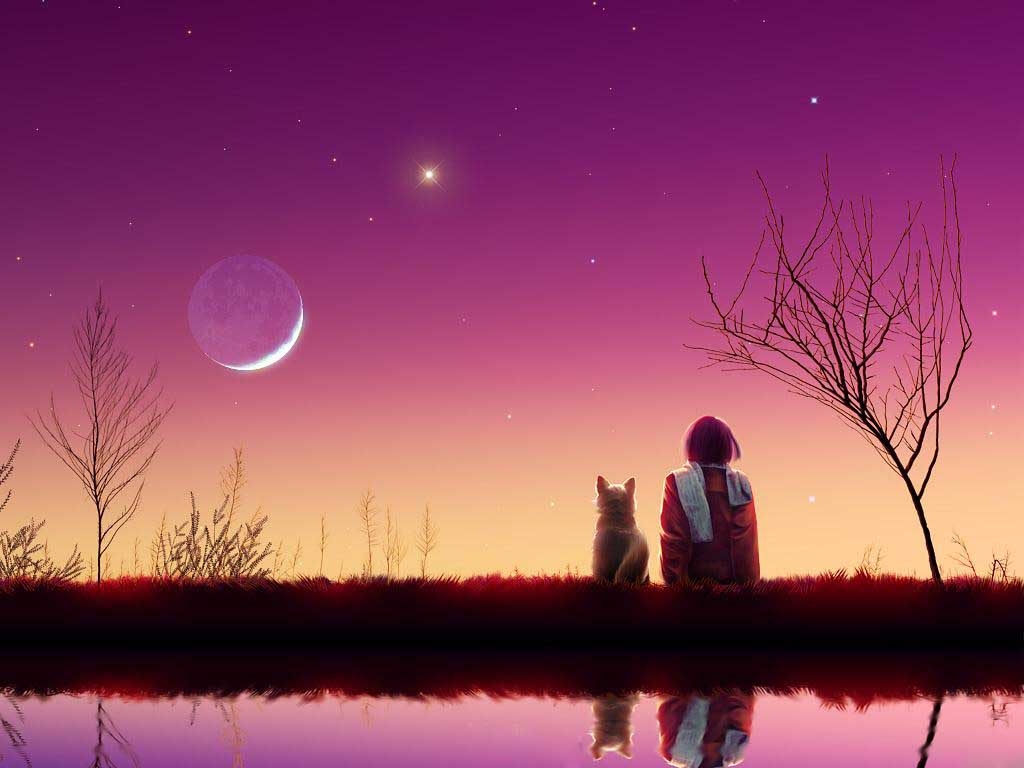 风似乎大了一些,大片大片的云雾如万马奔腾一般,践踏在月亮的身上。如是淡云,还能依稀可见月亮的神采;如是浓云,天空仿佛瞬间落下帷幕,将月亮严严实实地包裹,隐匿其中。只是很快的,风卷云雾,月亮又露出了可爱的娇容。那时,我竟产生了一种神奇的想法。那风一定是月亮用嘴吹,用手拂的。为了展示这一夜的美好,将温暖和光明传递,她不辞辛劳地驱赶着蒙蔽她的云雾,好给失落和思乡的人送去一丝慰藉。