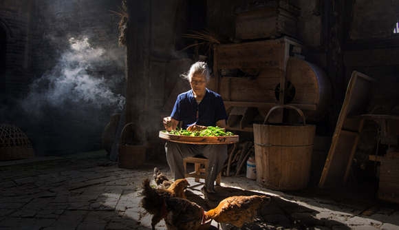 想到这些,我的心忽然一阵暖。老屋虽残破,却留下了童年的欢声笑语,刻骨铭心的温暖,还有母亲旧时的柔情。抬头,看见母亲正躬着背侍弄那些旧物,鬓角的白发在微风中轻扬,我突然幡然醒悟,风雨飘摇在老屋的屋脊,也肆虐在父母的背脊啊。
