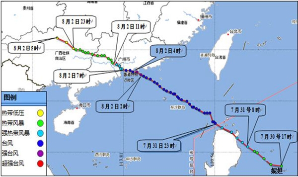 台风妮妲于2016年8月2日凌晨强势来袭,登陆时风力达到14级,是近年来正面登陆珠江三角洲的最强台风。惠州市已启动一级防风应急响应,不少单位实行了停业、停产、停课。
