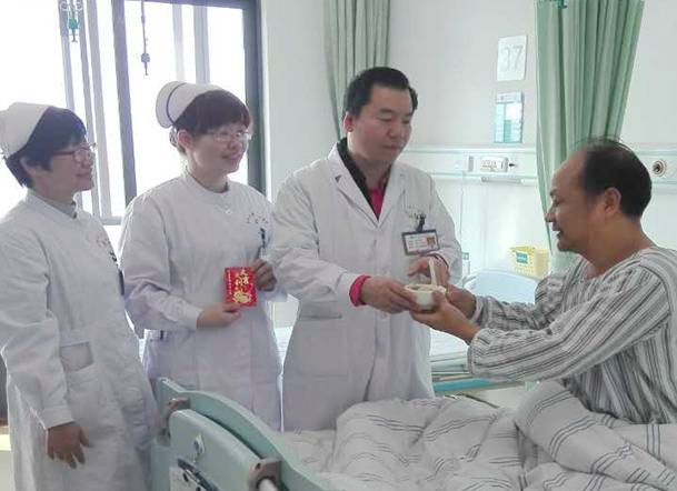 医务人员过年为住院患者送上年夜饺子和利是