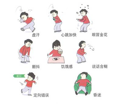 如果糖尿病患者:虚汗、脑晕、心跳加快、眼冒金花、颤抖、饥饿感、无力、手足发麻、说话含糊不清、烦躁、性格改变、定向障碍、癫痫发作、昏迷等,请先检测血糖,排除低血糖症、低血糖昏迷等。并及时就诊糖尿病专科,调整降糖方案。(急诊科 林月雄)