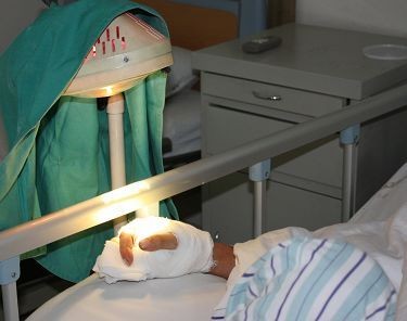 五、禁止将断指浸泡在任何消毒液或生理盐水中。因为浸泡会使细胞组织水肿或脱水、变性,显著的降低手术成功率。如果断指(肢)肮脏需要冲洗,只能用生理盐水。