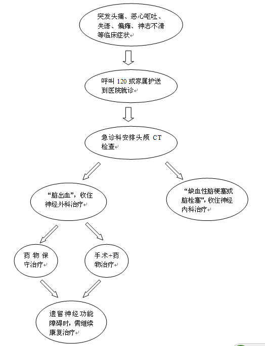 高血压性脑出血的患者大多数是未发现高血压或长期高血压而未正规治疗患者,当季节更换(特别是冬春季节)时、情绪激动、劳累等诱因而发病。高血压患者通常合并糖尿病、高脂血症等,共同作用而使脑动脉硬化并狭窄,当突发血压波动大时,便突破血管导致脑出血。发病后可有以下不适感:头痛、恶心呕吐、失语或言语不清、肢体乏力(偏瘫)、口角歪斜、偏侧感觉障碍(麻木)或神智障碍(呼之不应),可合并大小便失禁等临床症状。