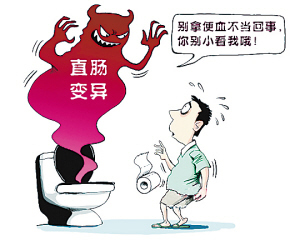 早期直肠癌首先最常见的症状就是便血,它和痔疮的便血非常相象;而结肠癌患者还多伴有大便习惯的改变,包括大便变细,大便的习惯改变,比如原来一天一次大便,后来没有什么原因变成一天好几次大便或者好几天一次大便,大便性质也发生改变,如每次大便都会带血,血色鲜红或暗红,可与粪便不混。结肠癌患者甚至伴有腹痛、腹胀,而直肠癌来说腹痛不是非常常见,疼痛的出现有的时候因为侵犯了周围的脏器。