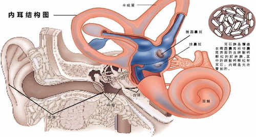 人的内耳有负责听力和维持平衡两个功能。内耳中的椭圆囊和球囊上有囊斑,其表面镶缀着许多像钻石一样的碳酸钙结晶,俗称为耳石。当某些因素导致耳石脱落,它就会在内耳中漂浮。如漂移到半规管内,就会影响人体平衡的功能,引起眩晕。