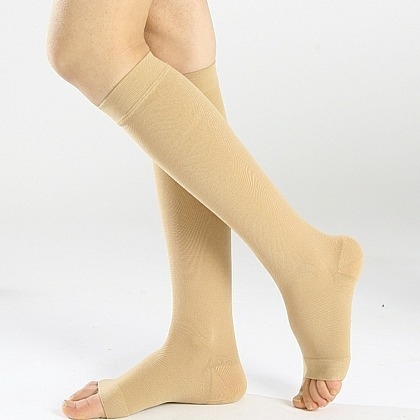 医用循序减压弹力袜(俗称弹力袜),是一种具有促进静脉血液回流心脏功能的产品。与普通丝袜不同的是,医用弹力袜在脚踝部建立最高支撑压力,顺着腿部向上逐渐递减。在小腿肚减到最大压力值的70%-90%,在大腿处减到最大压力值的25%-45%,压力的这种递减变化可使下肢静脉血回流,有效的缓解或改善下肢静脉和静脉瓣膜所承受压力使静脉功能不全的临床症状得到明显的改善,缓解由于静脉曲张、轻度踝部肿胀、腿部疲劳、怀孕水肿等相关问题引起的腿部不适。较强的压力是医疗弹力袜区别于普通丝袜的最大特点。它将自下而上的梯度压力作用于肌肉组织,再借助肌肉组织把压力传给静脉,促进静脉血液回流,改善淤血症状,从而达到治疗目的。