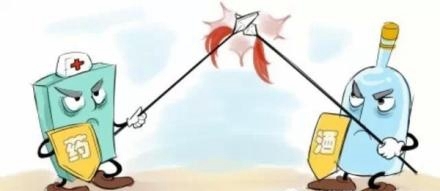酒的主要成份是乙醇,长期饮酒可诱导肝细胞色素氧化酶P450,加速一些药物在体内的代谢转化,使药效降低。例如安定药、抗过敏药、安眠药、抗凝血药、抗心绞痛药、降血压药、降血糖药以及大多数抗生素,都会受到酒精测影响,加重毒副作用,严重的甚至会致死。如在服用头孢菌素类药物、甲硝唑和磺脲类降糖药(格列苯脲、甲苯磺丁脲)期间饮酒,可出现面部潮红、心动过速、嗜睡、恶心呕吐等反应。因此在服药期间一般说来应该严格禁酒。(药学部