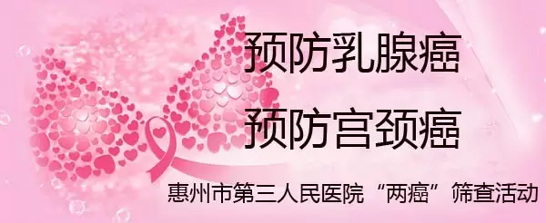 为了保障妇女的生殖健康,惠州市政府决定为35~59岁惠州户籍育龄妇女免费进行宫颈癌和乳腺癌筛查工作,惠州市第三人民医院作为市“两癌”筛查定点单位,现已启动筛查,微信报名火热进行中。早发现、早诊断、早治疗,预防“两癌”从筛查开始,为了您的健康,市三院将竭诚为您服务。
