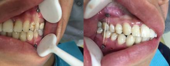 惠州市第三人民医院颌面外科王俊文医师了解病人情况及要求后,排除手术的可能性,建议患者保守行“颌间牵引钉多点多向牵引”,调整已移位骨折端及颞下颌关节相对位置以达到调整咬牙合关系的作用。对于这种保守治疗的方法,病人欣然接受,经过几轮牵引钉位置变更牵引调整,咬牙合关系恢复良好。