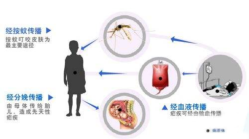疟疾,老百姓又叫做 “打摆子”,为夏秋之季最常见的危害人体健康的寄生虫病。引起疟疾的病原体是疟原虫,疟原虫是一种很小的寄生虫,由蚊子传播,当蚊子叮人吸血时,把疟原虫带入人体血液,引起传播流行。寄生于人体的有四种,即间日疟原虫、三日疟原虫、恶性疟原虫、卵形疟原虫。疟疾的主要症状包括发冷、发热、出汗、全身酸痛等,有时还伴有头痛、呕吐、腹泻、呼吸急促等症状。病情严重的患者还会出现谵妄、昏迷和休克,以及肝、肾功能衰竭,如不及时救治,有可能因病情延误而危及生命。多次发作可致脾脏肿大、贫血等。