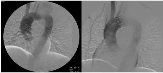 该患者虽经积极药物治疗,病情趋于稳定,但单纯的药物保守治疗已不能有效阻断动脉瘤的破裂。既往治疗该病的主要方法是通过切除动脉瘤并用适当大小的人造血管替换。但该手术过程较为复杂,创伤大、花费多,而且危险性也很高。