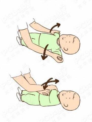 这套被动操是由骨科康复科的栗刚医生改编的哟!“独家秘笈” 上肢:宝宝平躺,面朝上,妈妈双手拇指撑开宝宝拇指,稍拉紧宝宝双手,使宝宝双手掌相对,相向运动双上肢,使双上肢伸展、合拢,反复进行5~10次。双上肢交替上举放下运动,5~10次,熟练后可在运动末端轻轻抖动几下,以增加本体感觉输入。