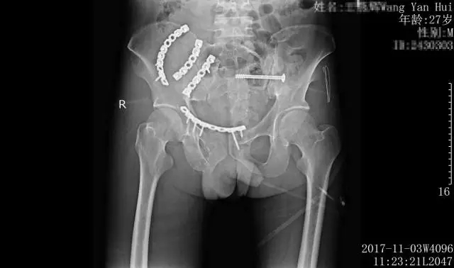 术后,患者生命体征平稳,无副损伤出现。一期骨盆骨折手术后1周,患者再次进行了二期四肢骨折重建手术,术后病情稳定,获得了良好的治疗效果,目前正在积极的康复当中。
