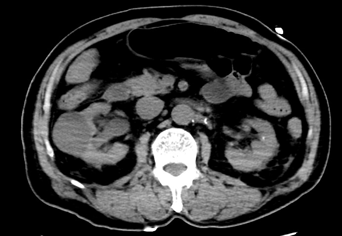 在有效的处理下,患者生命体征迅速稳定,行CT检查显示双肾周感染。