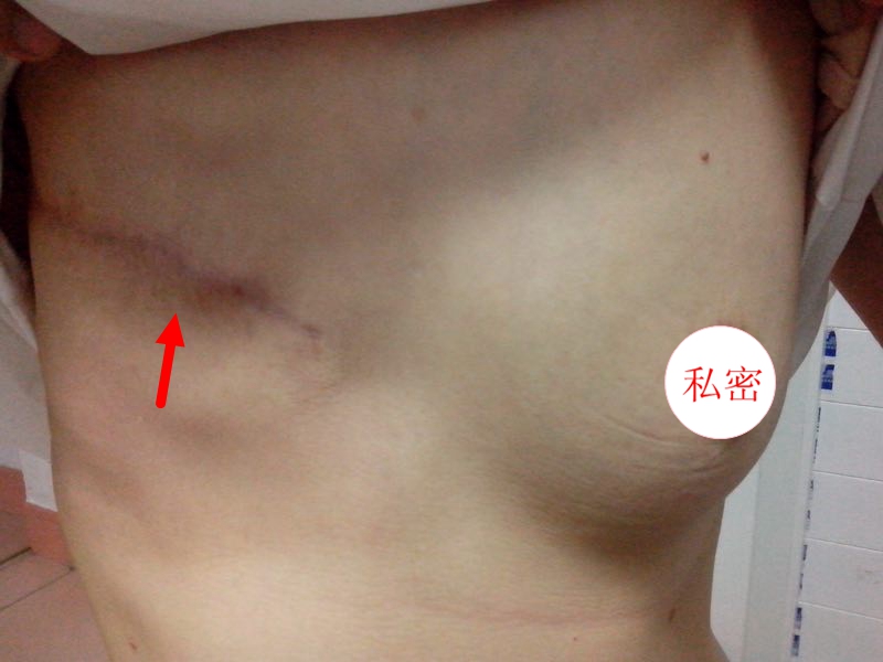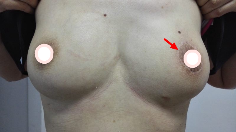 左乳的环乳晕切口。乳房依旧那个乳房,丰满美丽,基本上不影响外观。