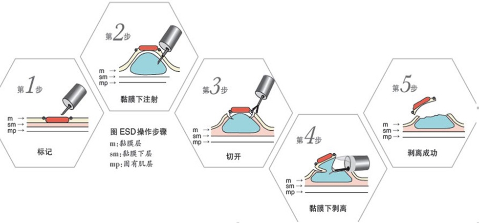 (2)消化道早期癌,结合色素放大内镜、超声内镜检查,确定早期癌的浸润范围和深度,对局限于粘膜层和没有淋巴结转移的粘膜下层早期癌,ESD治疗可以达到外科手术同样的根治效果。