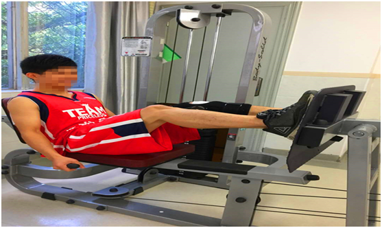●完全负重:完成单腿负重,继续蹬踏、靠墙半蹲等抗阻训练。