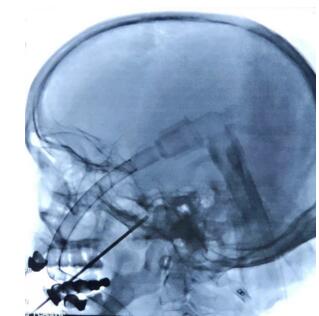 在C形臂引导下经嘴角外侧穿刺进入卵圆孔,将球囊导管送至半月神经节,充盈球囊,压迫数分钟,破坏神经传导,达到治疗目的。