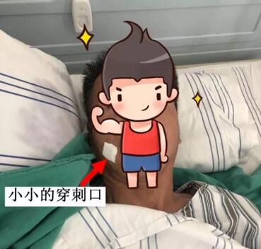 在征得患者及家属同意,做好充分的术前准备后,文世宏主任成功为患者施行了手术。该术式虽操作简单,但最大的难点便在于“穿刺”这一环了,这近乎于“盲穿”,对术者的操作技能要求极高!然而凭借敏锐的观察力与准确的判断力,文世宏主任轻轻松松就完成了这一操作,被同事笑称为“文一针”!