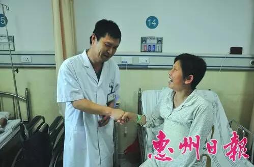 谌女士在惠州某事业单位工作的妹妹谌小姐得知此消息后,便把姐姐接到市第三人民医院医学影像科做检查,并要求把资料拷贝到光盘上,以备后续到广州、上海、北京等大医院做进一步治疗,没想到的是,在拷贝CT光盘的过程中,影像科崔冰主任在看谌女士的CT片时说,这种病在惠州市第三人民医院骨科医学中心武明鑫博士就可以做手术治好。欣喜若狂的她们到东院区住院部15楼脊柱关节外科找到了武明鑫博士,经过对谌女士病历和影像学资料的研判,武明鑫博士非常明了地告诉谌女士及其家人,可以通过手术治疗让谌女士重新站起来走路!