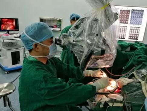 32)本地区首例术中彩超+黄荧光染色辅助下脑深部胶质瘤切除术。