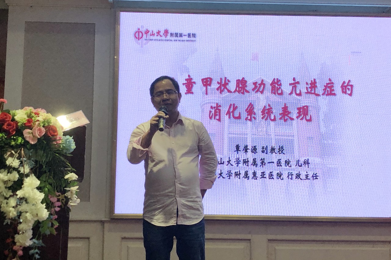 中山大学附属第一医院惠亚医院覃肇源教授以《儿童甲状腺功能亢进症的消化系统表现》为题,深入浅出地讲解了甲状腺功能亢进对消化系统影响及临床表现,抗甲亢药物消化系统副作用,还分享了他在儿童甲亢的用药经验。