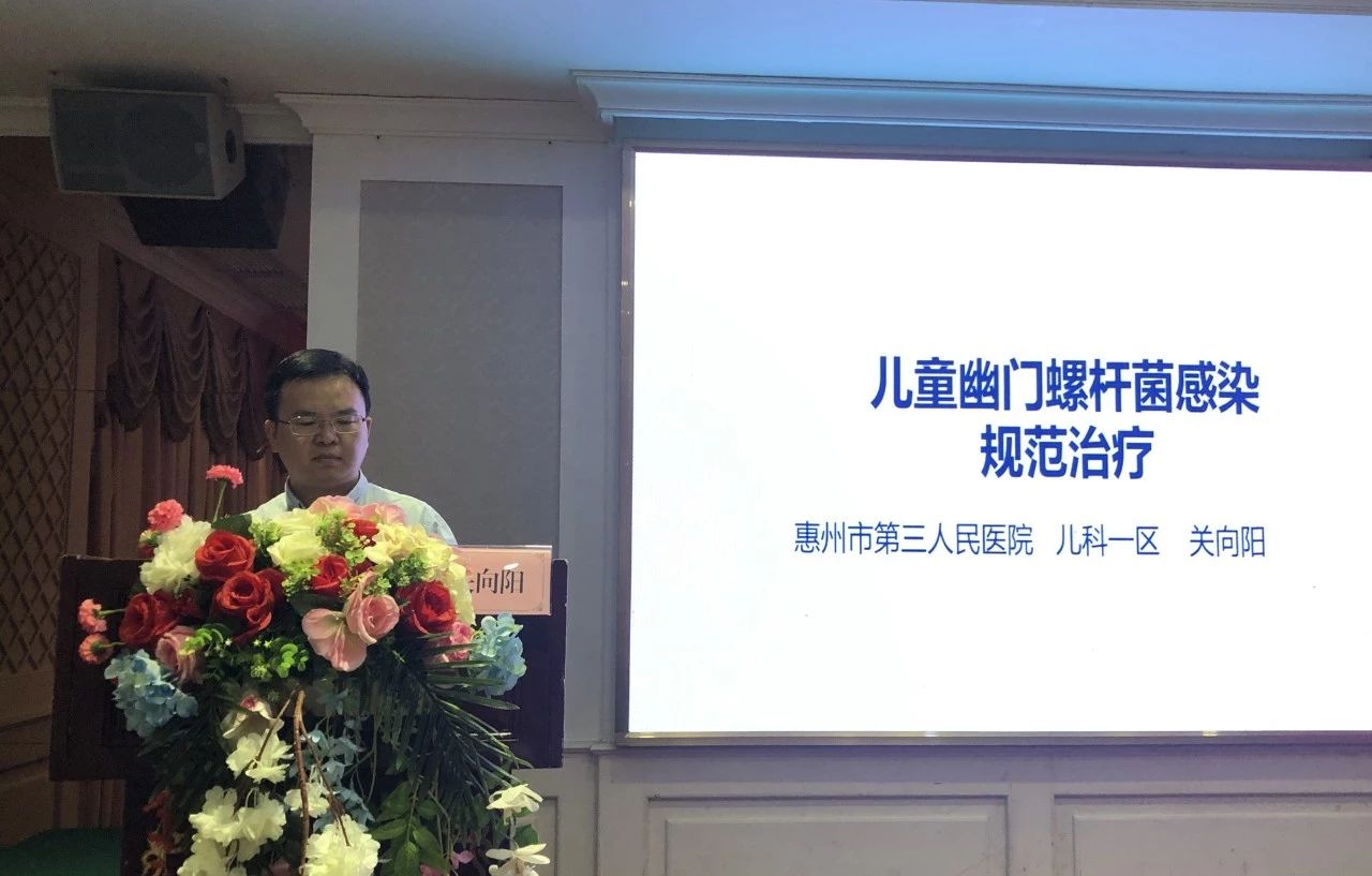 惠州三院儿科一区关向阳副主任医师在《儿童幽门螺旋杆菌感染的规范治疗》的专题讲座中指出,目前儿童幽门螺旋杆菌感染发病率高,应进行规范治疗,并详细介绍了干预指征、用药、随访等。