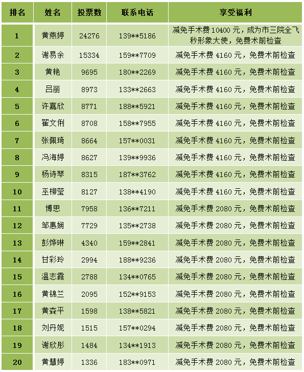 投票结果出炉!惠州三院全飞秒形象大使花落谁家?