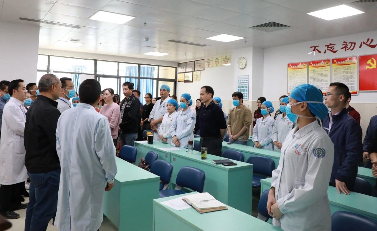 邓汉东书记强调,全院医护人员都要提高敏感度和警惕性,做好防控工作和保护措施,只有保护好自己才能守护好病人。他号召全体党员干部要不忘初心、牢记使命,充分发挥先锋模范带头作用,以强烈的责任感和使命感当表率,共同打赢这场硬仗。他关切地说,同志们,我们的任务艰巨又光荣,为了百姓的幸福安宁,大家都辛苦了!