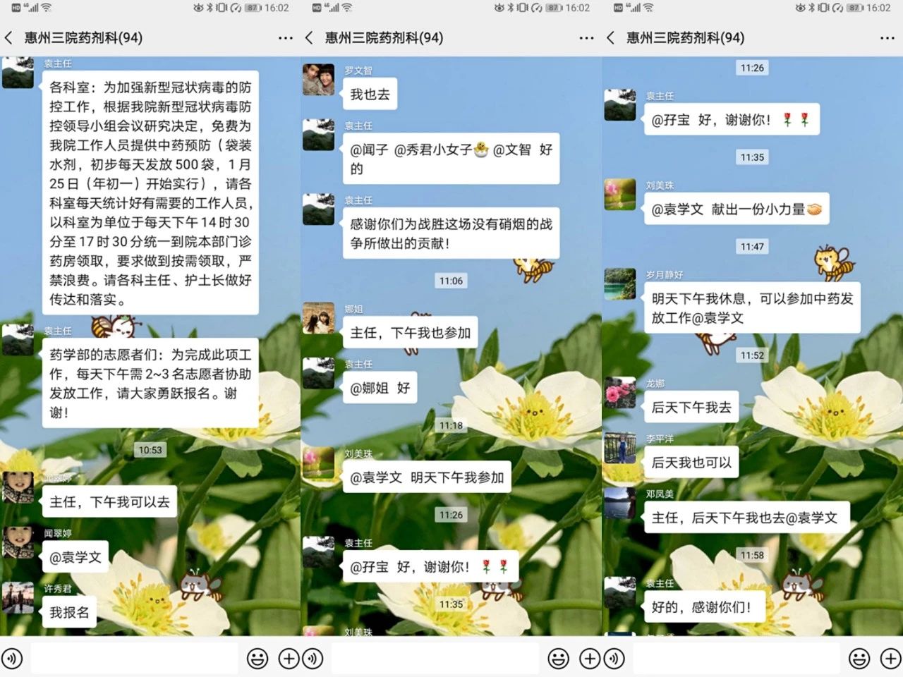 而为了让这项工作迅速落地,让临床一线人员及早喝到这包中药,药学部全体人员积极响应号召,踊跃报名加入到发放中药的志愿者队伍中。