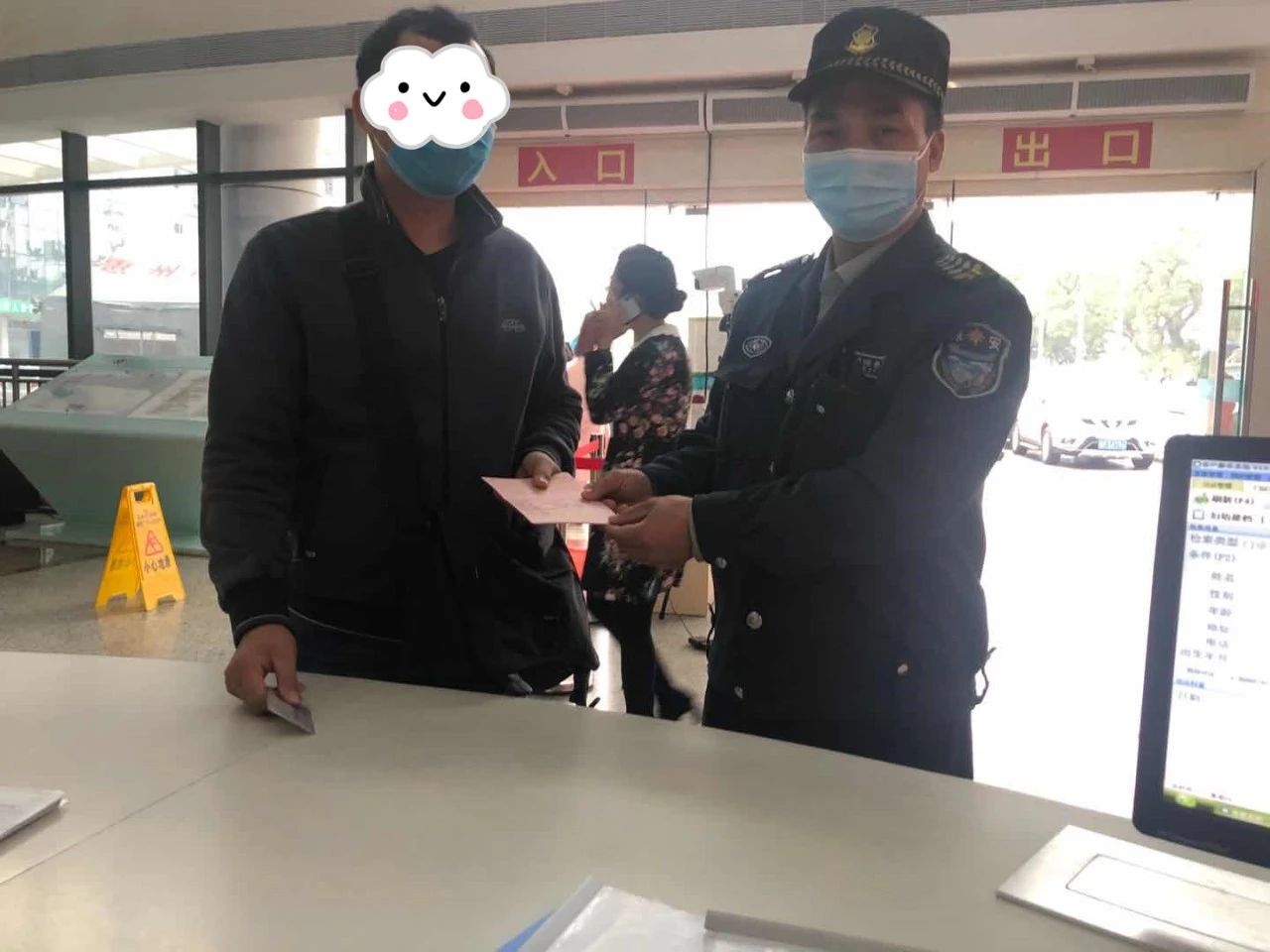 他举起手中的喇叭,马上广播询问是否有人丢失物品,始终没人应答。于是,他马上报告上级领导,最终通过惠州三院客服系统找到了失主并物归原主。在等待失主前来的过程中,他多次在门诊门口与门诊大厅之间徘徊,直到亲手将遗失物品交到失主手中才安心。
