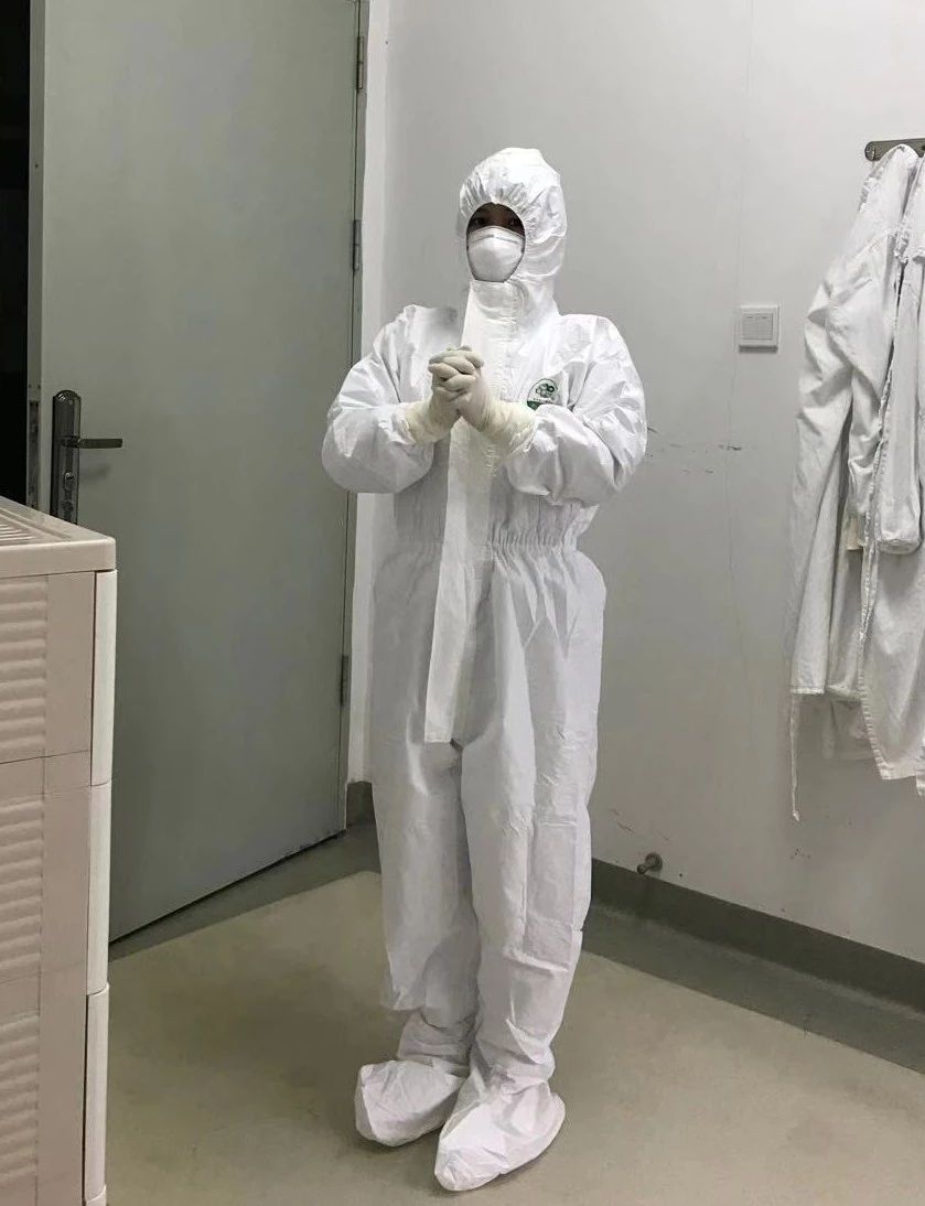 为了节约防护服,每次由两名医护人员进去污染区持续工作8个小时,再轮换。梁紫茵医生说:“因为防护服穿戴麻烦,一旦穿上八小时以内都不能上卫生间,所以我们一般进入病房前都不喝水。”