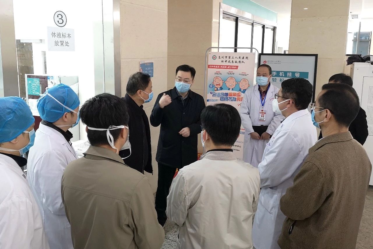 2020年2月3日上午,惠城区人民政府翟树宇区长、陈广文副区长到惠州市第三人民医院指导新型冠状病毒感染肺炎疫情防控工作,惠城区卫生健康局邹忠平局长、惠州三院院长马显力、党委书记邓汉东等领导班子成员及相关职能科室负责人陪同。