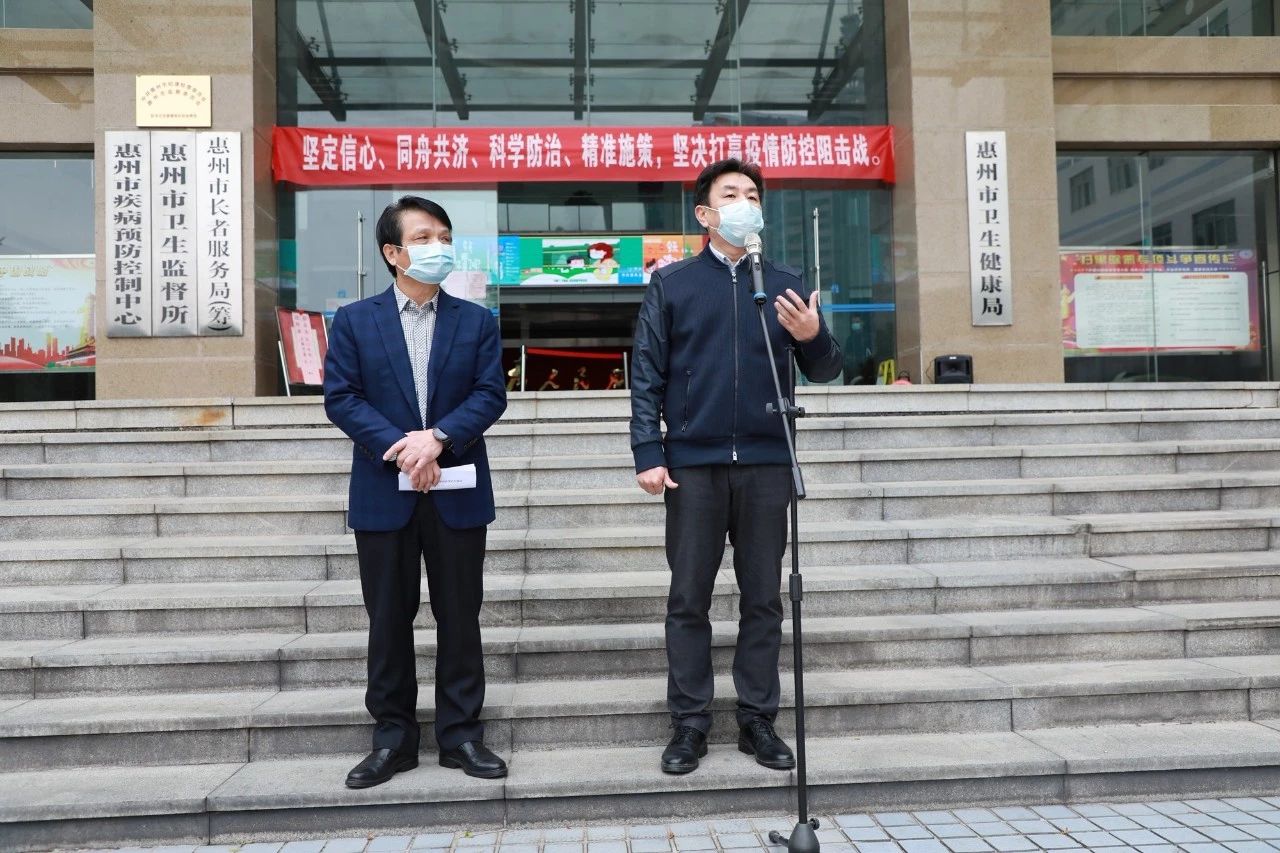 “今天凌晨,第一批支援湖北的任务交给了惠城区的医护人员,医疗队在一夜之间组建完成,可以看出大家抗击疫情的决心和效率。大家要在保护自己的前提下,体现出惠城区医疗队伍的精气神。你们是新时代的猛士,在最关键时刻迎难而上,都得到家人的支持,毫不犹豫挺身而出,在此,我向勇士和支持勇士的家人们致敬。徐永辉同志,请带领队员们圆满完成任务,齐齐整整归来!”刘光滨书记在发言中表示,希望医护人员保护好自己,健健康康地回来。徐永辉主任医师坚定地点头。