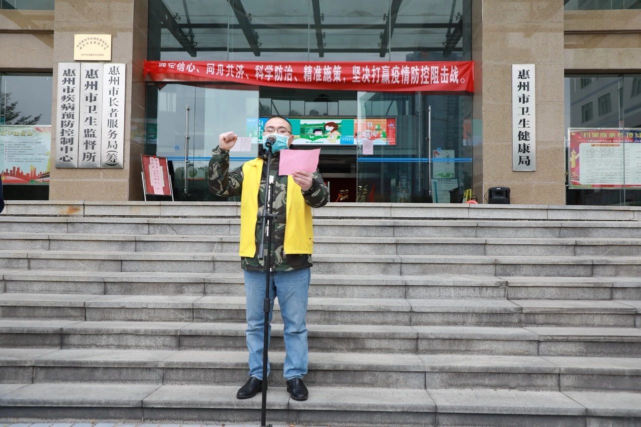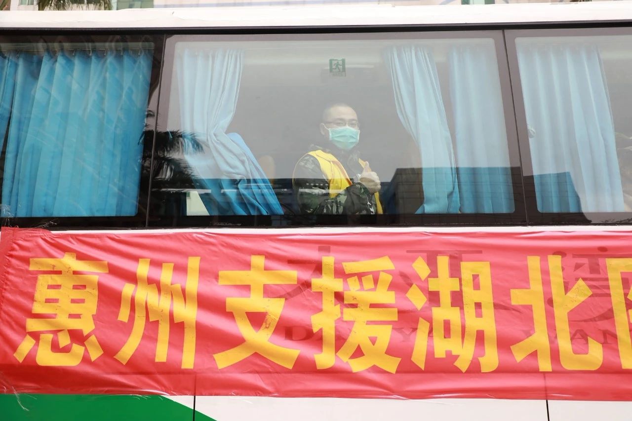 “面对疫情,我们选择逆风前行!医者天职,我们自愿出征!我们庄严宣誓:坚决听党指挥,不负中央重托,不负人民期望,全力以赴,战胜疫情,平安归来!”出征仪式上,惠州首批支援湖北医疗队队长徐永辉带领全体队员宣誓,随即出发驰援湖北。