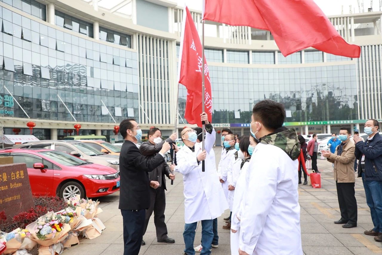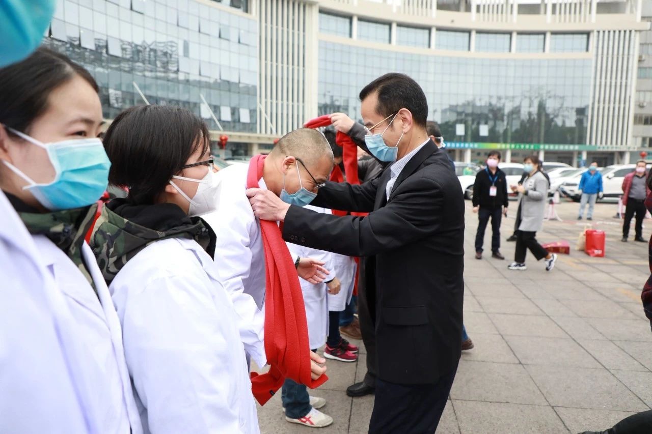 “支援湖北具有重要意义,湖北胜则全国胜!你们是政治过硬、业务过硬的优秀代表。到达一线后,既要发挥专业特长全力抗击疫情,也要保重身体,平安而归。我们将确保后方无忧,请大家放心。”出征仪式上,李贻伟书记叮嘱和勉励医疗队员,期待大家凯旋。