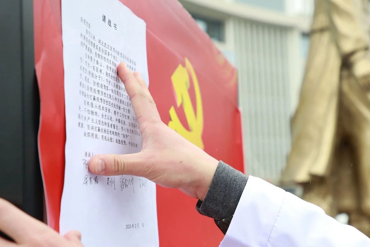 “我们将听党指挥,坚定信念,牢记使命,服从安排,遵守纪律,不计得失,不怕牺牲,精诚团结,冲锋在前,众志成城保卫民众健康,齐心协力打赢疫情防控阻击战!战必用我,用我必胜!”仪式上,我院医疗队员们递上《请战书》并庄严宣誓。8名队员中,有党员4名、积极分子4名。在疫情爆发初期,他们就主动申请加入医院防控疫情党员突击队,表达了抗击疫情的坚定决心。队员们纷纷表示,已经做好了到前线抗疫的充分准备,绝不辜负组织的重托!