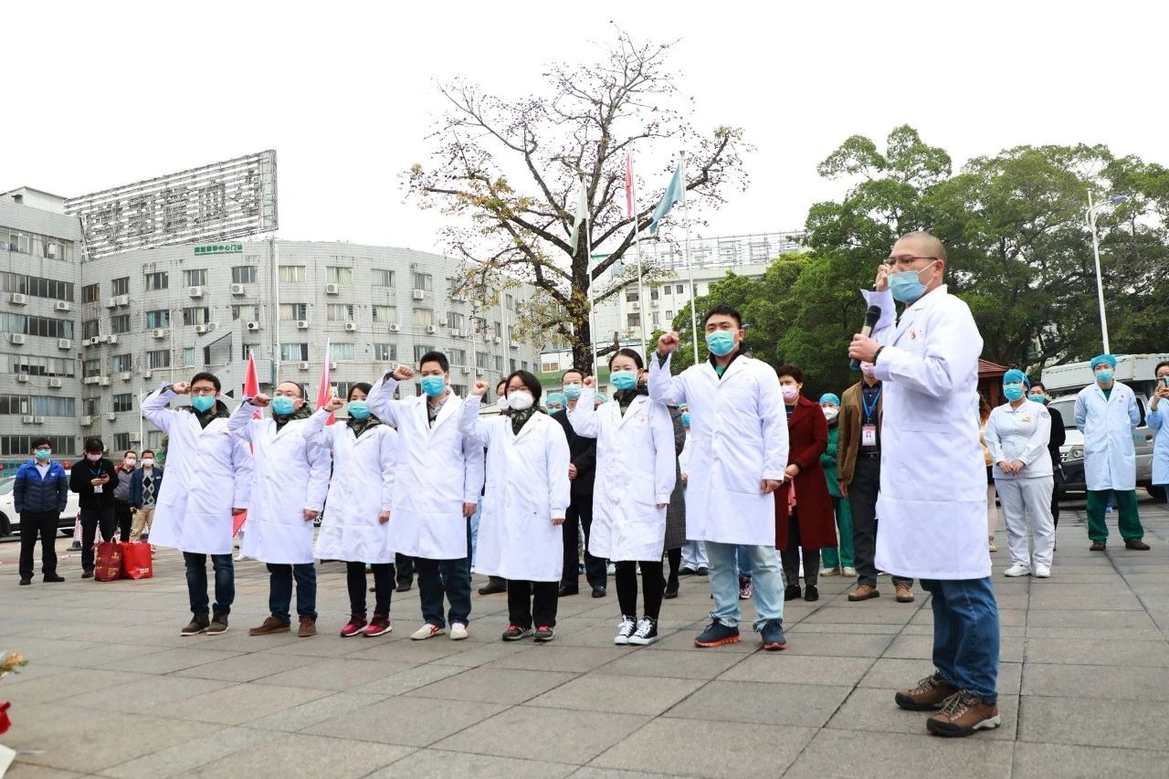 惠州三院援鄂医疗队代表陈维生动情地说:“1月18日,84岁的钟南山院士提醒大家‘没什么特殊情况,不要去武汉’,而他自己却昼夜兼程地赶往武汉调研疫情。1月24日,在广东省首批援鄂医疗队中,看到省医老师的身影,深受感动,无声泪下,是日除夕。今天,我和惠州三院的战友将奔赴湖北抗疫一线,责无旁贷、义无反顾,因为我是一名医生,我是一名中国共产党员!”
