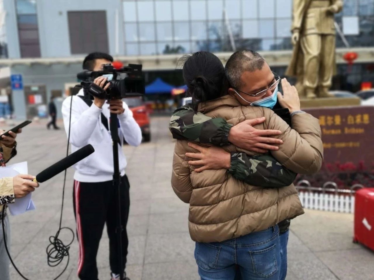 医疗队员陈钊成医生的妻子也是医务工作者,对他的工作很是理解和支持。临行前,他给妻子一个大大的拥抱,瞬间眼泪夺眶而出。