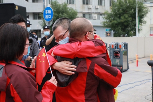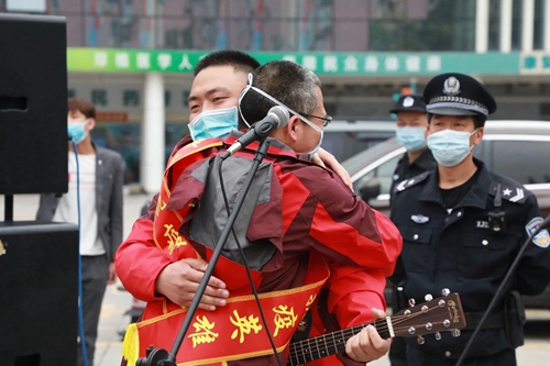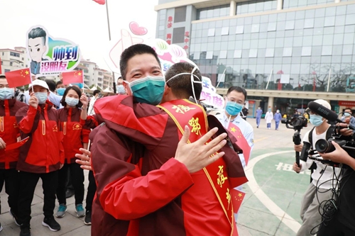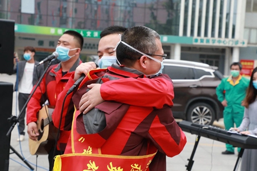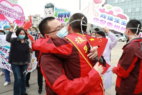 陈维生与援鄂队员真情相拥