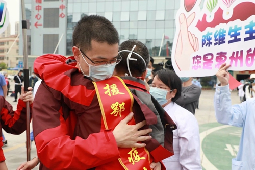 随着陈维生主任顺利返乡,至此,惠州三院13名援鄂医疗队队员圆满完成援鄂任务,全部平安归来。千里驰援不辱使命,你们是英勇无畏的白衣战士,是无悔逆行的抗疫英雄,更是惠州人民的骄傲!
