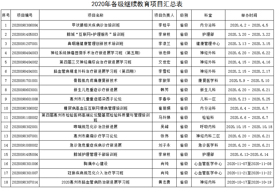 2020年各级继续教育项目汇总表